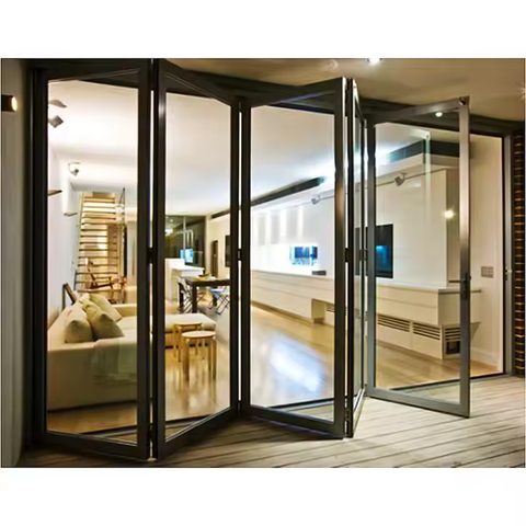 Puerta corrediza plegable de aluminio de color gris oscuro de suministro de fábrica